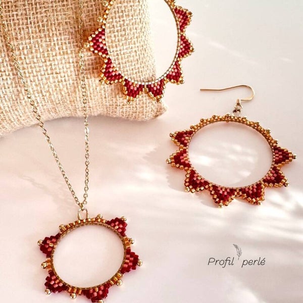 Son pendentif circulaire, finement tissé à la main, allie perles de verre lumineuses et finitions dorées, créant un bijou à la fois léger et captivant. Porté seul ou en parure, le collier Malia complète une silhouette tout en finesse et élégance.