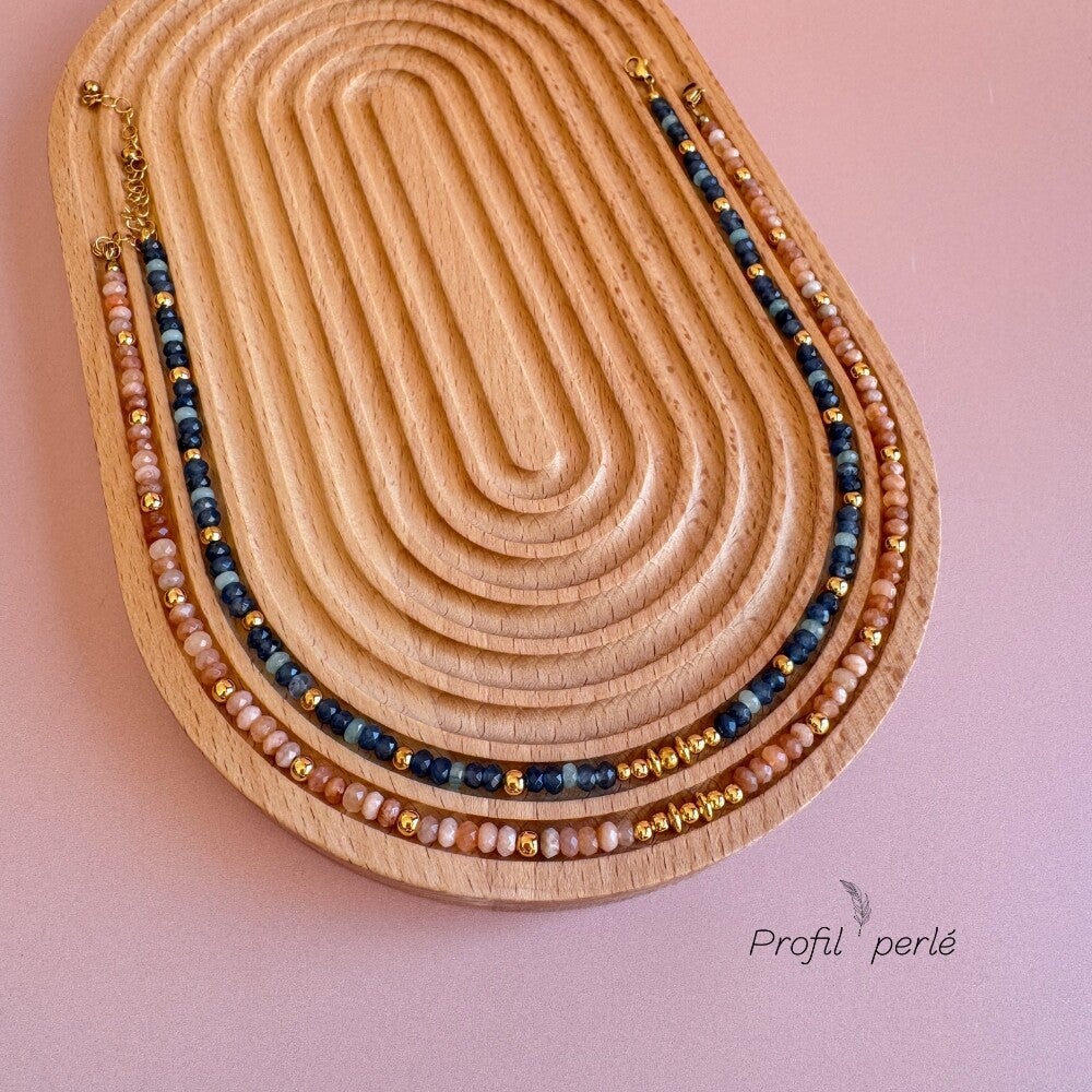 Inspiré par la profondeur du bleu jean et la douceur des teintes naturelles, le collier Zélie traverse les tendances avec une simplicité raffinée. Il se porte en toute occasion, sublimant aussi bien un look décontracté qu’une tenue plus habillée.